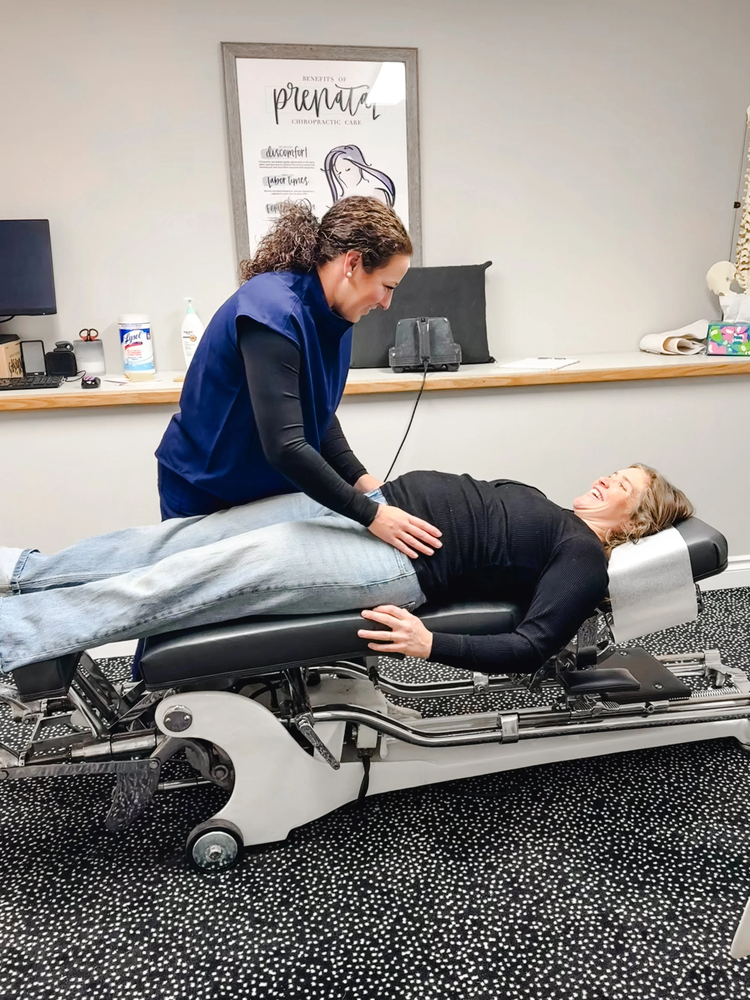 As you know now growing a little human is hard work! Your body goes through a number of changes especially in the alignment of your body that causes discomforts. But it doesn’t have to be that way! Chiropractic care plays a big role in optimizing your body’s alignment to decrease lower back pain as well as relaxing uterine ligaments allowing baby to have more space to get into the best birthing position.